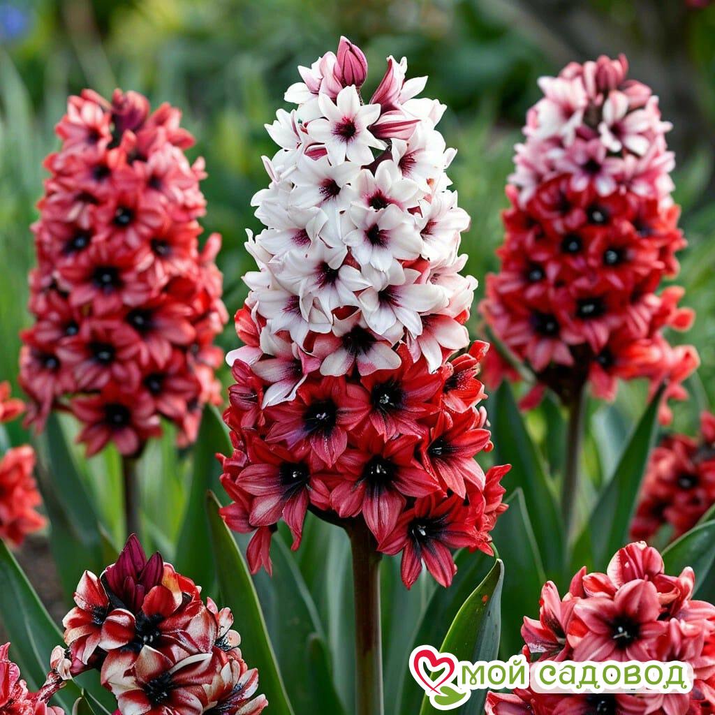 Гиацинт «Скай Гарден»: восходящее солнце в вашем весеннем саду Добро пожаловать в интернет-магазин “Мой Садовод”! Мы с восторгом представляем вам один из самых впечатляющих и редких сортов гиацинтов — “Скай Гарден” (Sky Garden). Этот гиацинт, словно миниатюрный восход солнца, захватывает дух своим уникальным цветовым градиентом, переносящим вас в мир мечтаний и весеннего обновления. “Мой Садовод” — ваш надежный проводник в мир прекрасных растений, предлагающий только лучшие саженцы для создания вашего личного райского уголка! Гиацинт «Скай Гарден» — настоящее произведение искусства природы. Его нежные цветки, окрашенные в неповторимый градиент от насыщенного красного у основания до кристально-белого на вершине, создают эффект восходящего солнца, наполняя сад теплом, светом и позитивной энергией. Представьте, как этот прекрасный гиацинт будет смотреться на вашей клумбе, в бордюре или в контейнере на балконе, притягивая взгляды и вызывая восхищение у всех, кто его увидит. Основные характеристики гиацинта “Скай Гарден”: Уникальная окраска цветков: главная особенность этого сорта — его неповторимая и завораживающая окраска цветков. Свет бутона гиацинта «Скай Гарден» плавно переходит из насыщенного красного цвета у основания в чистый белый цвет на вершине, создавая эффект восходящего солнца или заката, отраженного в небе. Этот градиентный переход цвета придает цветкам особую глубину и объем, делая их невероятно привлекательными. Размер цветка: каждый отдельный цветок гиацинта «Скай Гарден» имеет небольшой размер, около 2-3 см в диаметре. Однако благодаря плотному расположению множества цветков в колосовидном соцветии создается впечатление пышного и обильного цветения. Длина соцветия может достигать 15-20 см, превращаясь в настоящий букет из нежных колокольчиков. Высота растения: Гиацинт “Скай Гарден” — это компактное растение, достигающее в высоту 20-25 см. Такая высота делает его идеальным для создания эффектных композиций на клумбах и в бордюрах, а также для выращивания в контейнерах на балконах и террасах. Он прекрасно впишется в любой ландшафтный дизайн, добавив ему элегантности и изысканности. Аромат: Гиацинт “Скай Гарден” обладает сильным, приятным и насыщенным ароматом, который наполнит ваш сад весенним настроением и создаст атмосферу уюта и гармонии. Зимостойкость: Гиацинт “Скай Гарден” обладает хорошей зимостойкостью, что позволяет выращивать его в большинстве регионов с умеренным климатом. Однако в регионах с суровыми зимами рекомендуется мульчировать посадки, чтобы защитить саженцы от вымерзания. Другие характеристики: Гиацинт «Скай Гарден» отличается ранним сроком цветения, устойчивостью к основным болезням и вредителям, а также относительной неприхотливостью в уходе. Он хорошо размножается и сохраняет свою декоративность при правильной агротехнике. Преимущества покупки саженцев в интернет-магазине “Мой Садовод”: Высокое качество саженцев: мы гордимся качеством наших саженцев гиацинта “Скай Гарден”. Все наши растения выращиваются в нашем собственном питомнике с использованием современных технологий и под строгим контролем специалистов. Соответствие сорту: мы гарантируем полное соответствие сорта «Скай Гарден» заявленному описанию. Вы получите именно то, что 